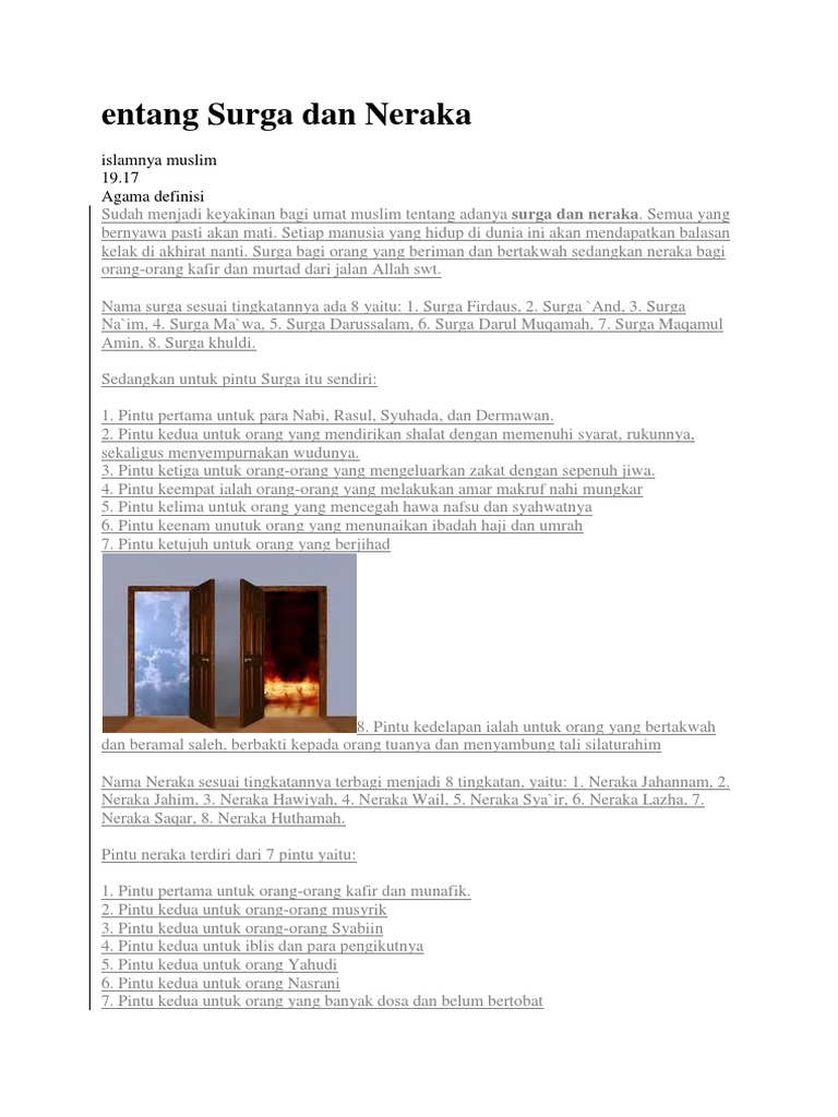 Tak ada kehidupan lagi setelah akhirat. Nanti malam itu, ulang tahun perkawinan bude dan pakde, timpal budeku sambil senyum genit sekali. 8 jenis surga dan tingkatannya dalam islam. Setelah di celupkan sekali dalam neraka, allah bertanya padanya apakah ia pernah merasakan kenikmatan semasa hidupnya, penduduk neraka itu menjawab tidak pernah sekalipun ia merasakan kenikmatan. #syurga #nuzul_dzikri salam kenal semua, insyaallah channel ini akan terus update mengangkat tema pembahasan seputar islam dan informasi bermanfaat.